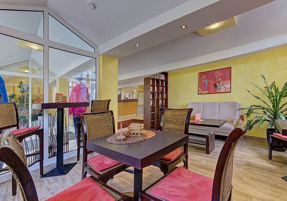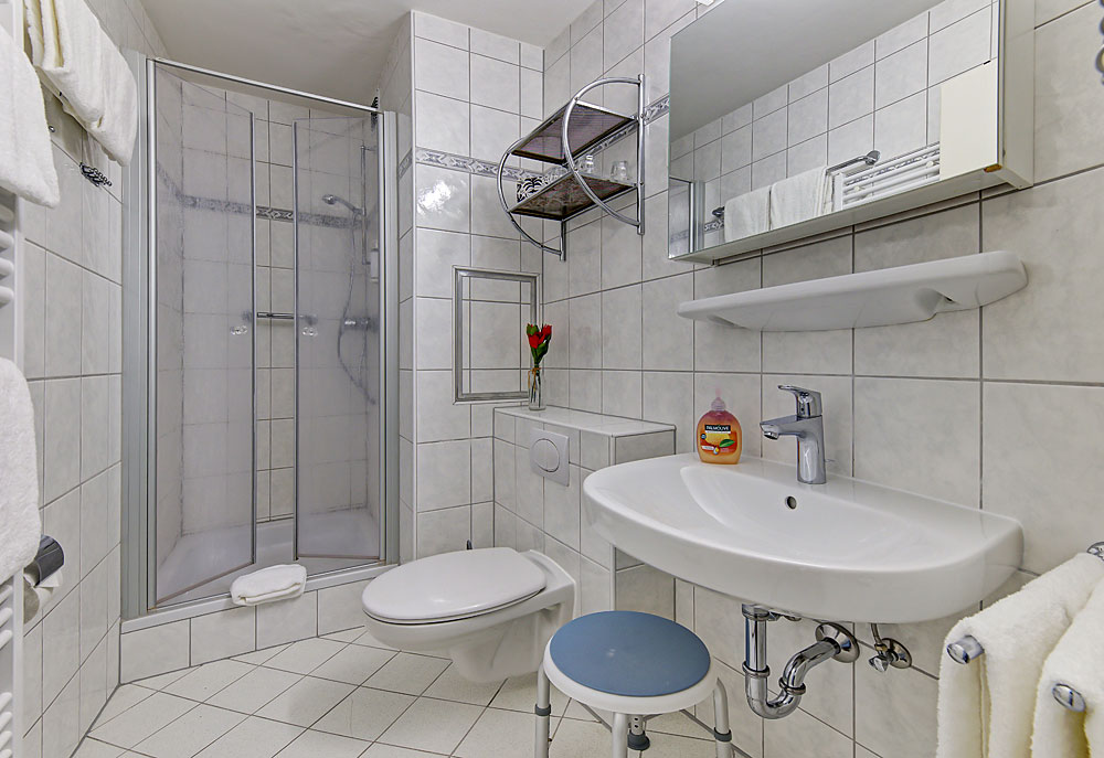 Alle Zimmer sind bequem mit dem Lift zu erreichen und haben direkten Zugang zu allen Einrichtungen des Hauses (Restaurant, Hallenbad, Sauna etc.).